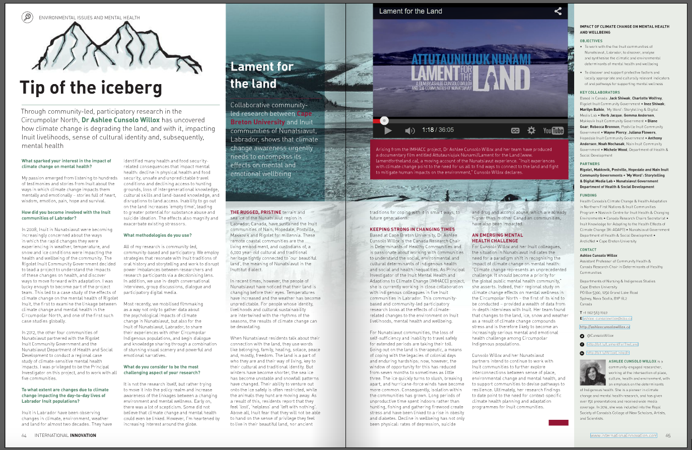 A screen shot is available below, but to view the digital version, complete with an embedded link to our documentary film, Attutauniujuk Nunami/Lament for the Land, please view pages 66 and 67 here.